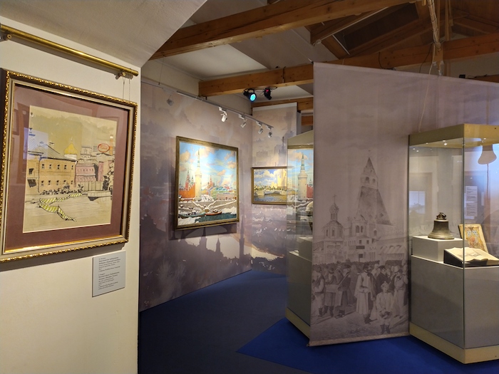 На листах старинных гравюр увидите утраченную в годы сталинской реконструкции Москвы грандиозную Сухареву башню, панораму Красной площади времен жизни в Первопрестольной П. И. Чайковского. Насладитесь живыми образными представлениями корифеев советской сценографии Ф. Ф. Федоровского, С. Ф. Николаева, Б. Г. Кноблока, В. Ф. Рындина о разных эпох в истории великого города, запечатленных на эскизах декораций к операм «Жизнь за царя», «Борис Годунов», «Хованщина», «Война и мир». Глядя на панорамные и камерные виды столицы, созданные молодыми живописцами — студентами Российской академии живописи, ваяний и зодчества Ильи Глазунова – ощутите, как с течением времени меняется Москва на полотнах.
