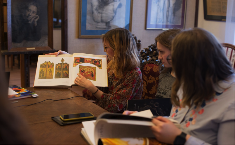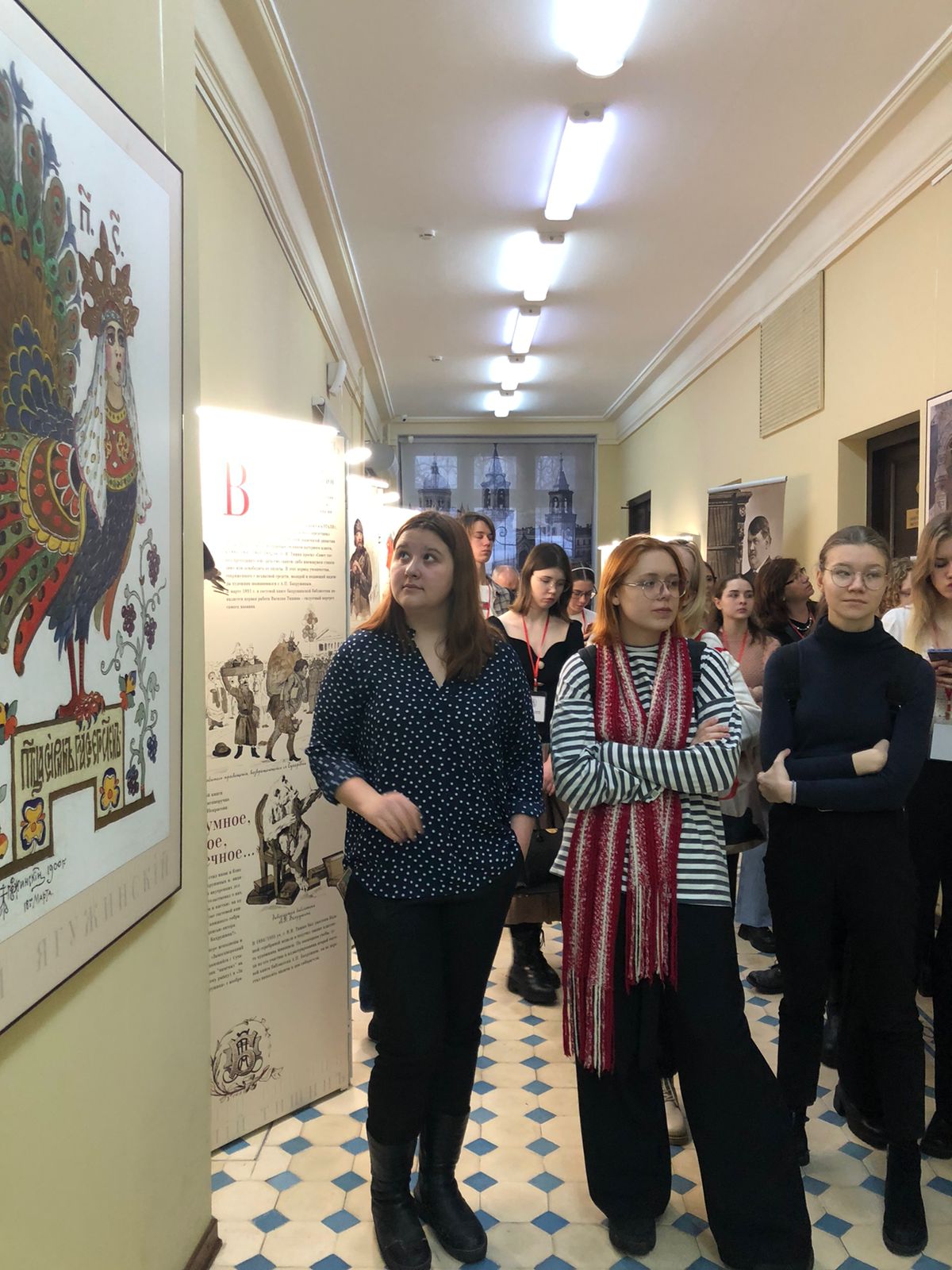 16 января 2024 г. студенты 1-го курса факультета искусствоведения Академии Ильи Глазунова посетили выставку «Здесь русский дух… Коллекция А.П. Бахрушина глазами художников» в Государственной публичной исторической библиотеке России (ГПИБ). В продолжение семинара «Педагогические практики Московского училища живописи, ваяния и зодчества (МУЖВиЗ)», в рамках учебной дисциплины «Практикум экскурсионно-просветительской деятельности», читаемой доктором искусствоведения Е.А. Скоробогачевой, они познакомились с выставкой и прослушали интереснейшую лекцию.