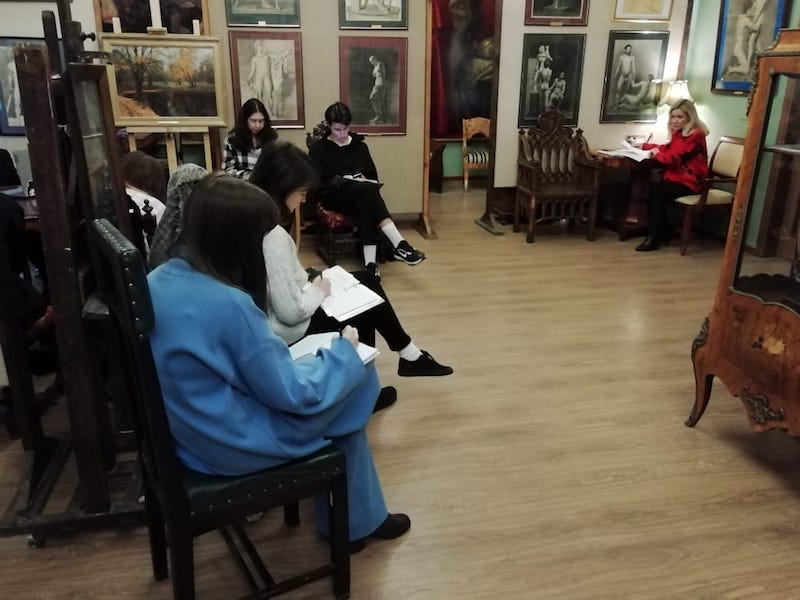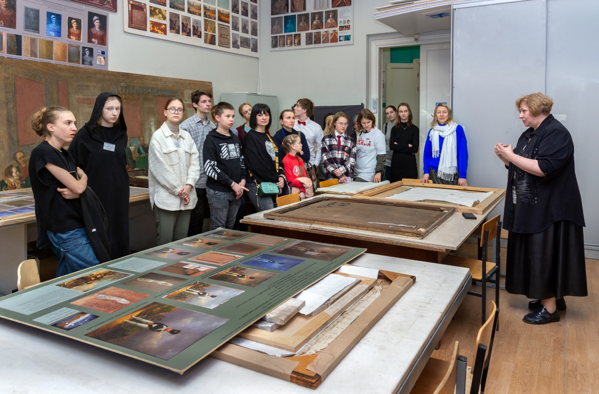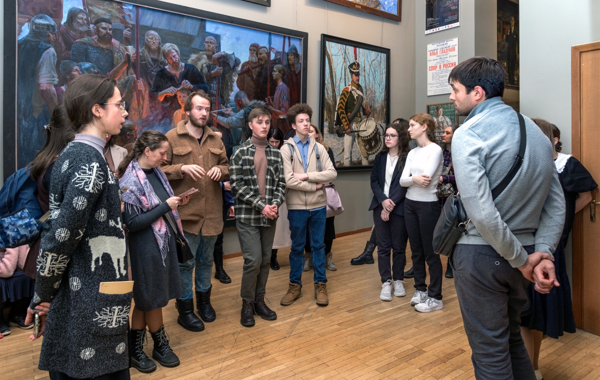 20 января 2024 года в библиотеке РАЖВиЗ Ильи Глазунова состоялась лекция Е.А. Скоробогачевой «Историческая живопись России» для Сообщества православных учителей и учащихся. Также студенты факультета искусствоведения Академии Ильи Глазунова провели обзорные экскурсии. Гости Академии увидели залы парадной анфилады, академического музея, библиотеки, кабинета рисунка, зал учебных живописных работ, образцы лучших студенческих работ из фондов Академии. Сотрудники факультета реставрации живописи рассказали о специфике учебного процесса, показали мастерские реставрации темперной и станковой масляной живописи.