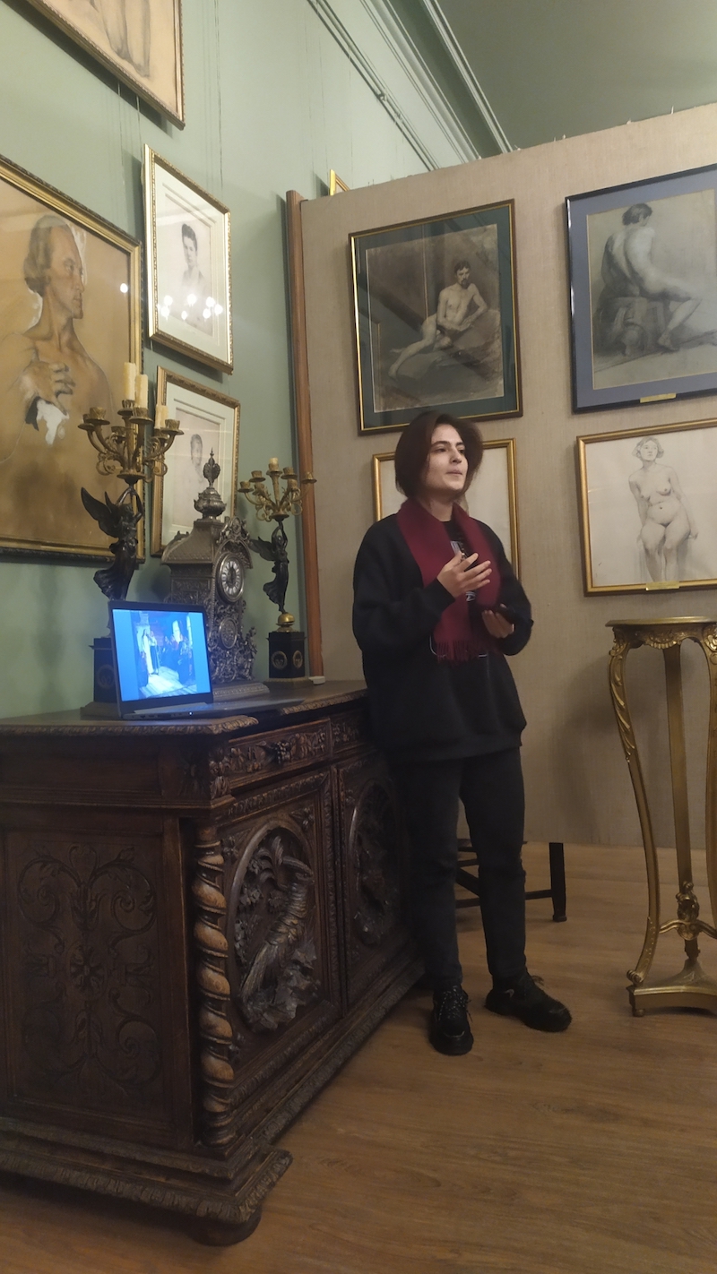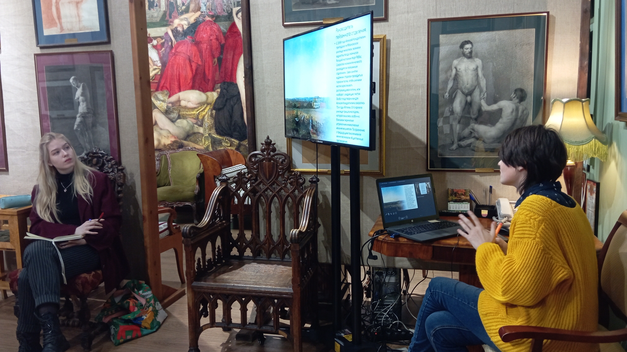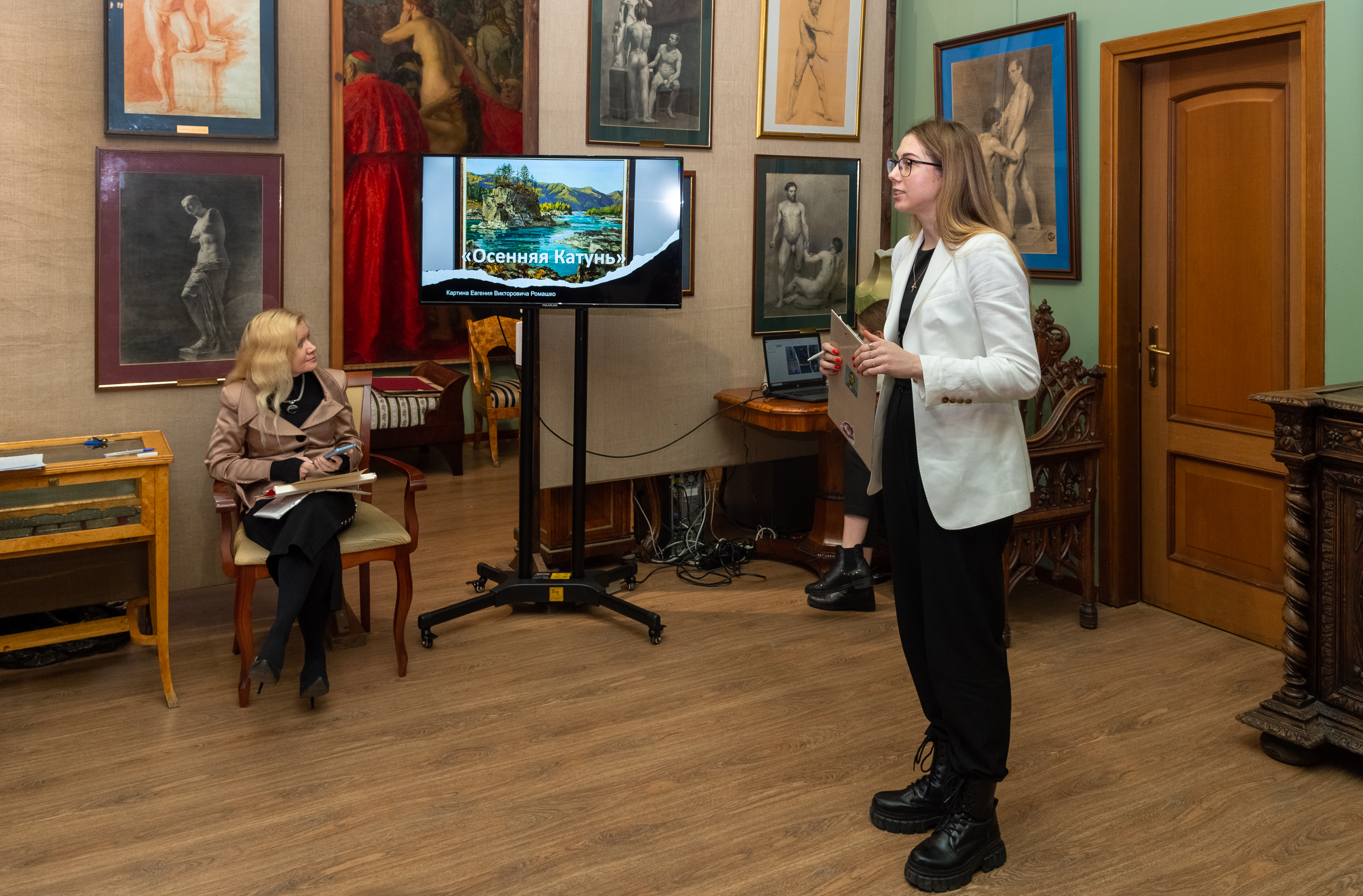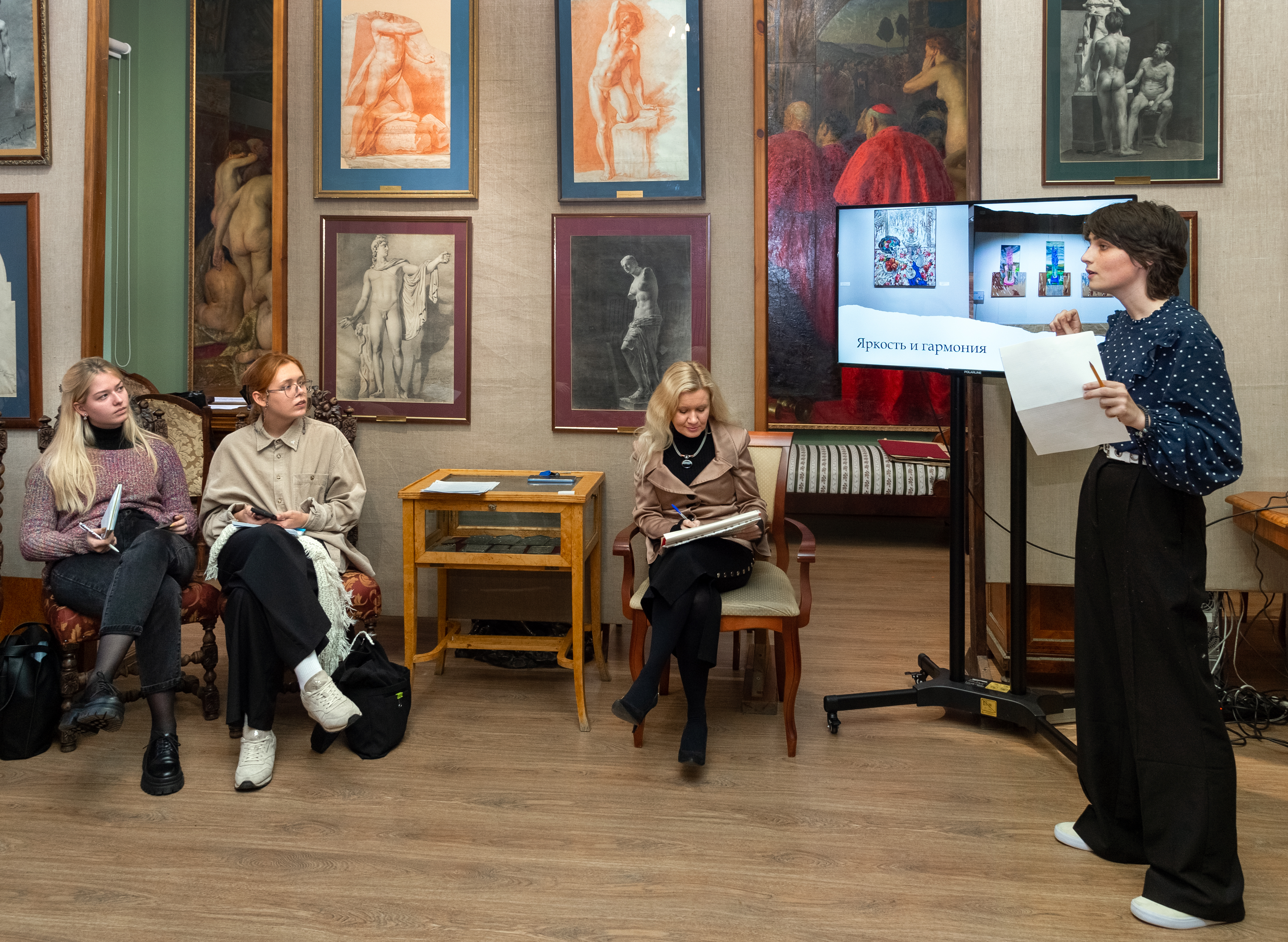17 октября 2023 г. в музее Академии состоялся семинар для студентов 1-го курса факультета искусствоведения по теме учебной дисциплины «Практикум экскурсионно-просветительской деятельности», который провела доктор искусствоведения Е.А. Скоробогачева. В ходе семинара прозвучали доклады и сообщения студентов, обращенные к персоналиям, художественным объединениям и учебным художественным центрам настоящего времени, в том числе рассказ об экспонатах «Выставки молодых художников регионов России», которая состоялась в октябре 2023 г. в залах Союза художников России в здании Новой Третьяковской галереи на Крымском валу.