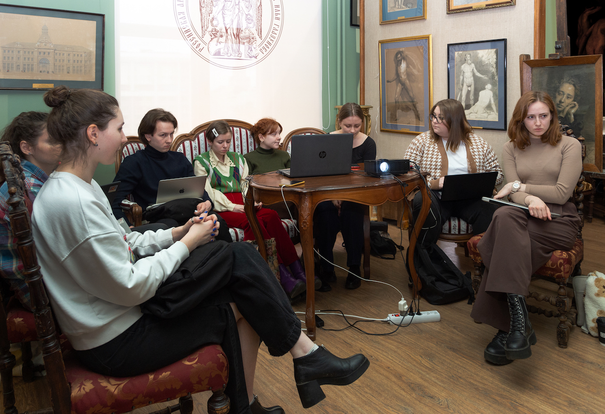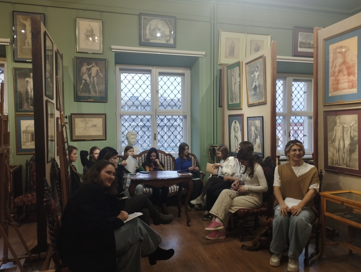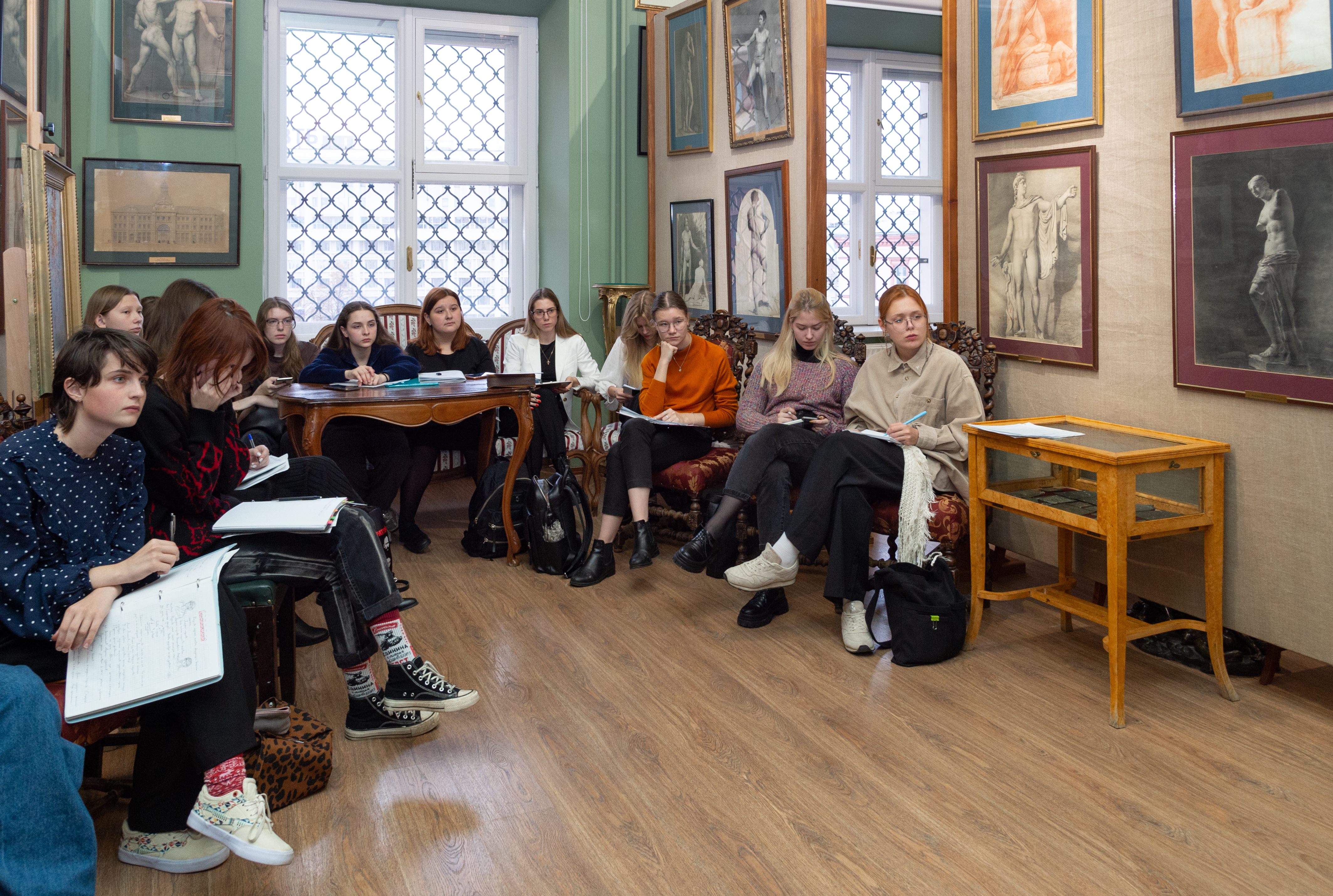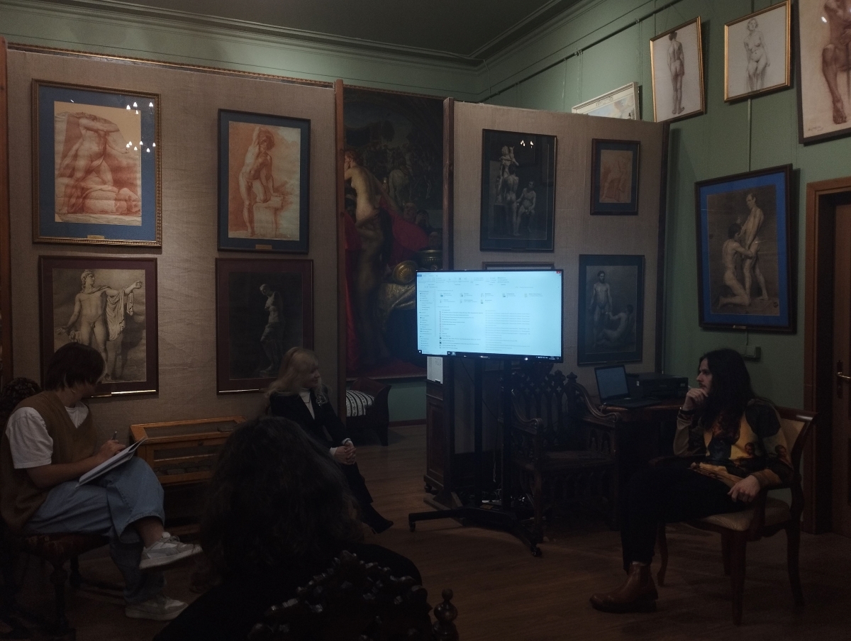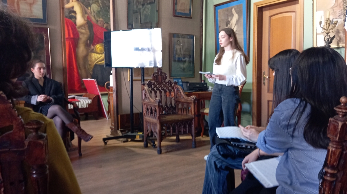 24 марта 2023 г. в музее Академии состоялся семинар для студентов 4-го курса факультета искусствоведения по теме учебной дисциплины «Русское искусство ХХ – первой половины XXI века». В ходе семинара прозвучали доклады и сообщения студентов, обращенные к персоналиям, художественным объединениям и учебным художественным центрам 1900–1910-х гг., в том числе освещались экспонаты, представленные в экспозиции зала графики: учебные штудии Л.И. Плаксина, портреты, исполненные И.В. Косминым, рисунки Г.Н. Горелова.