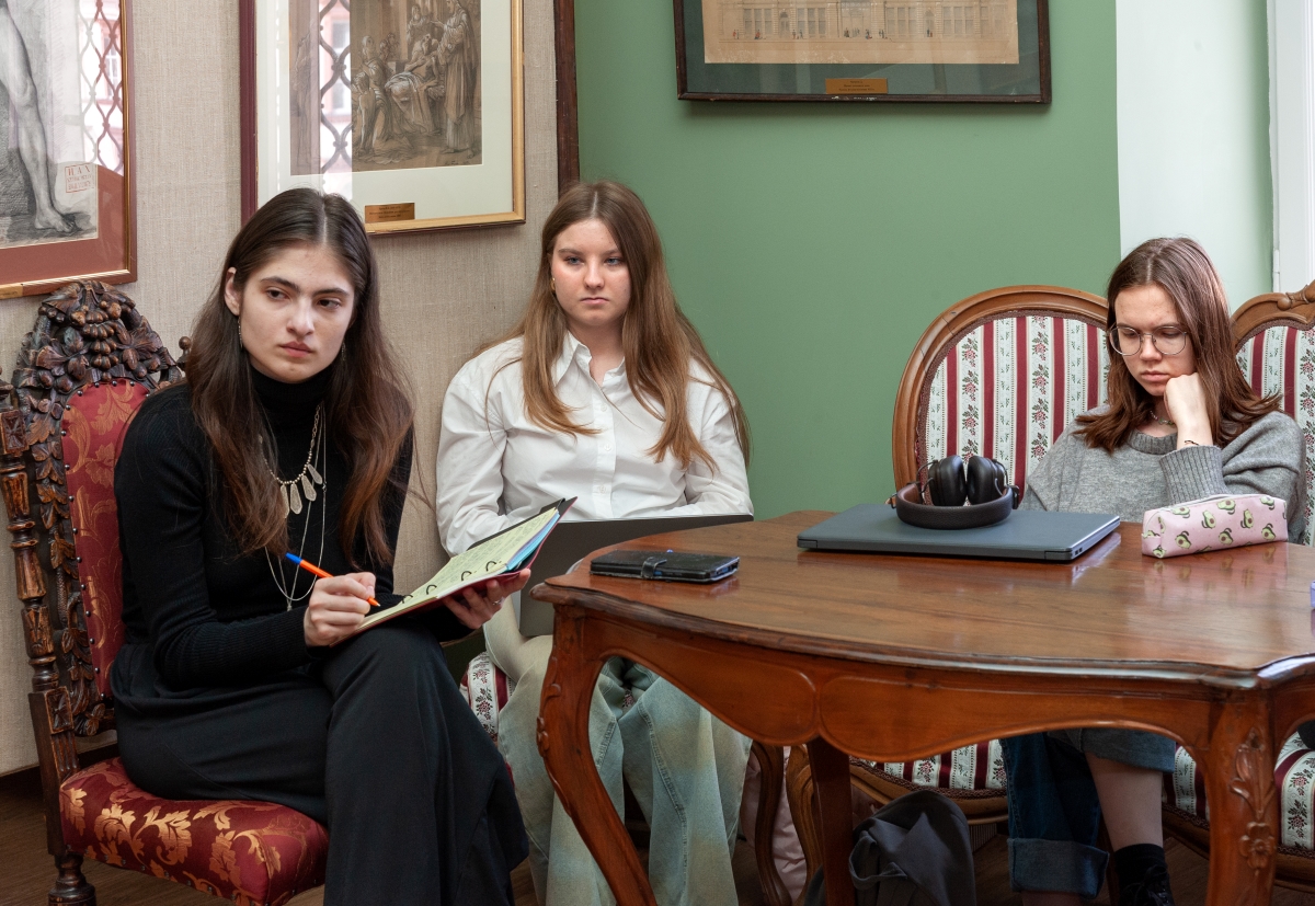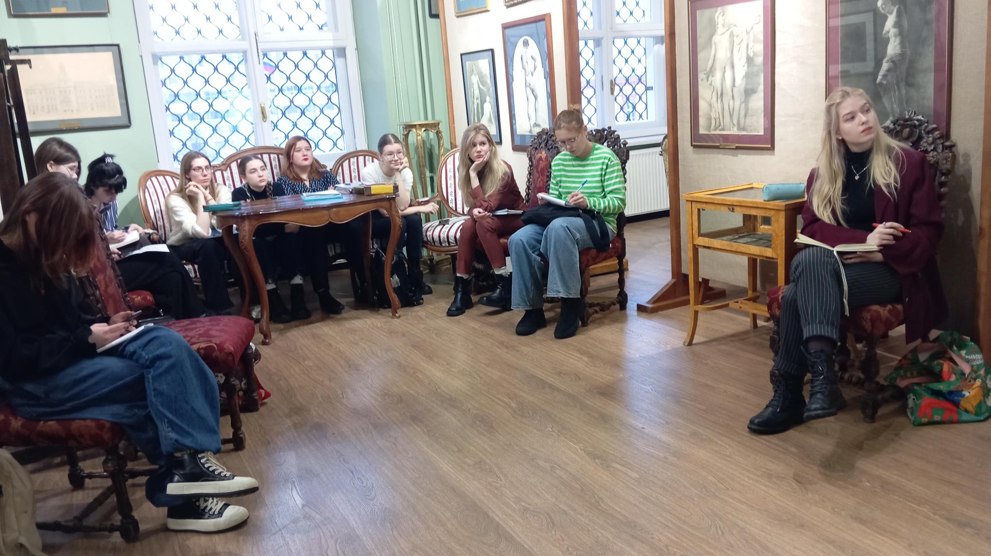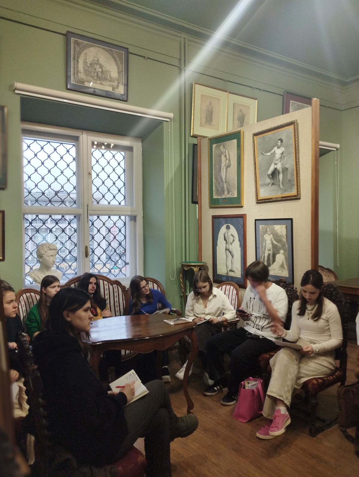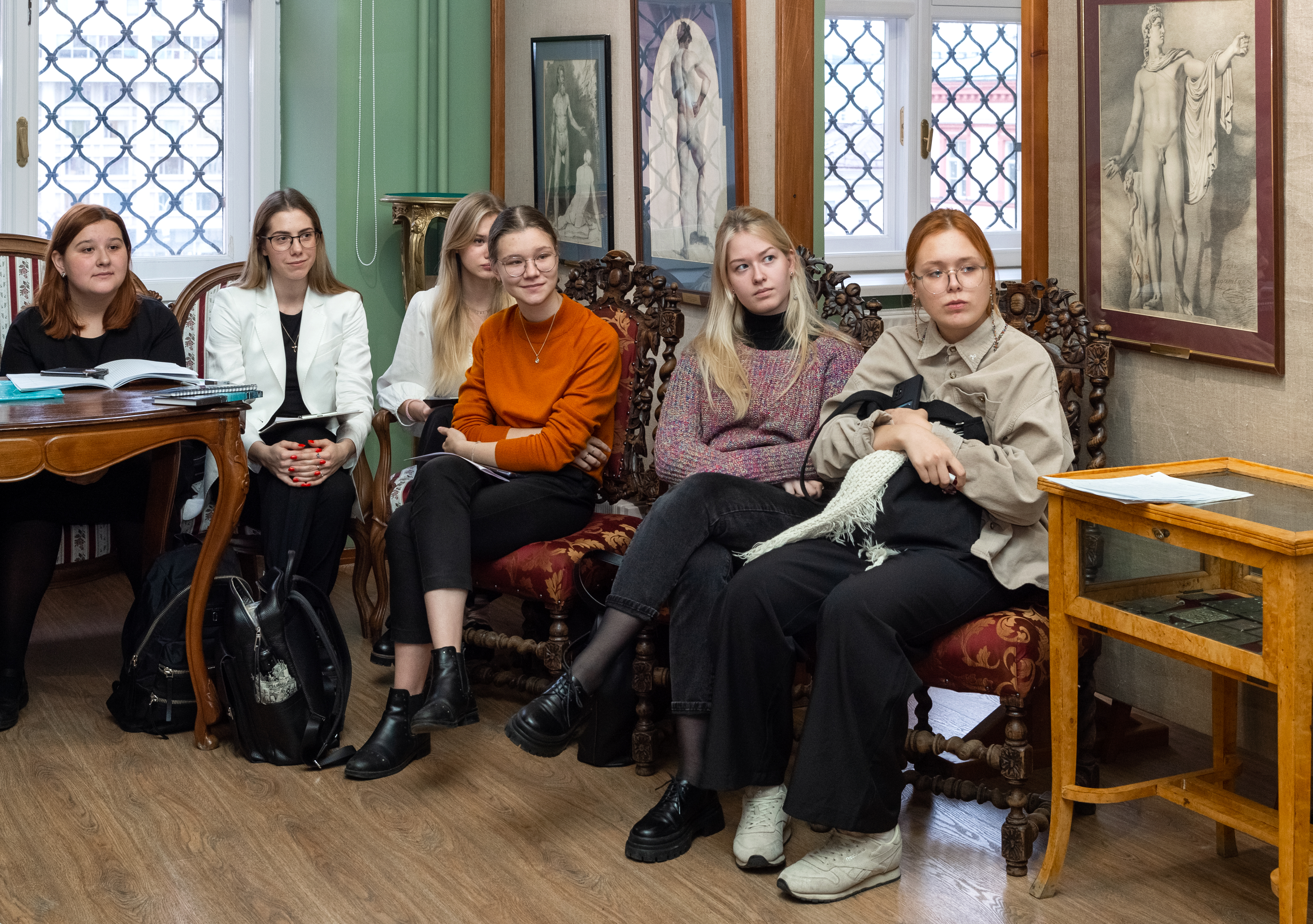 24 марта 2023 г. в музее Академии состоялся семинар для студентов 4-го курса факультета искусствоведения по теме учебной дисциплины «Русское искусство ХХ – первой половины XXI века». В ходе семинара прозвучали доклады и сообщения студентов, обращенные к персоналиям, художественным объединениям и учебным художественным центрам 1900–1910-х гг., в том числе освещались экспонаты, представленные в экспозиции зала графики: учебные штудии Л.И. Плаксина, портреты, исполненные И.В. Косминым, рисунки Г.Н. Горелова.