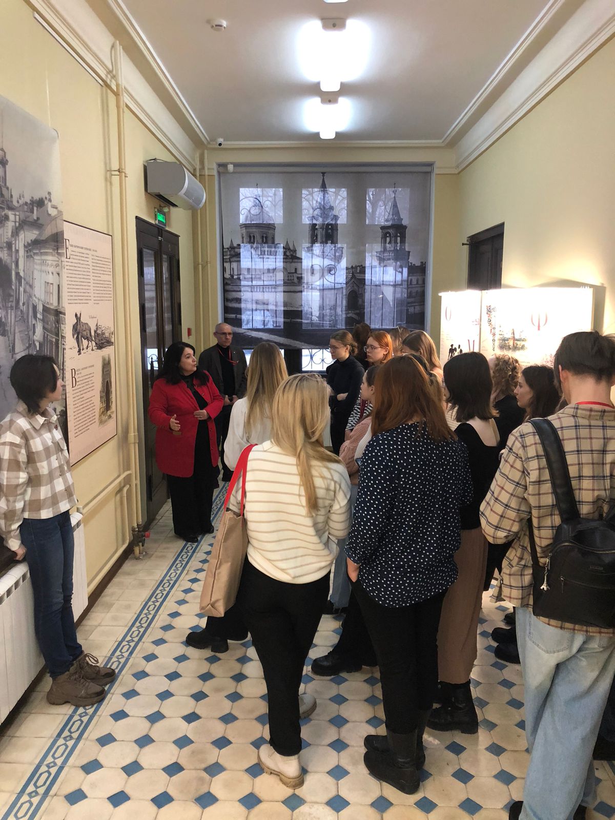 28 октября и 2 ноября 2022 г. в академическом музее состоялись семинары для студентов 1-го и 2-го курсов факультета искусствоведения по темам учебных дисциплин «Практический курс музееведения» и «Организация музейных экспозиций». В ходе семинаров прозвучали доклады и сообщения студентов, обращенные к современным экспозициям музеев и галерей Москвы, в том числе Государственного музея изобразительных искусств им. А.С. Пушкина (выставка «Брат Иван. Коллекции Михаила и Ивана Морозовых»), галереи «Артефакт» (Алексей Саврасов. Шедевры из частных собраний»), Российской академии художеств (персональная выставка «Многострадальная, героическая, великая…» Дмитрия Белюкина), Центрального дома российской армии (выставка «Моя Россия» Василия и Натальи Куракса).