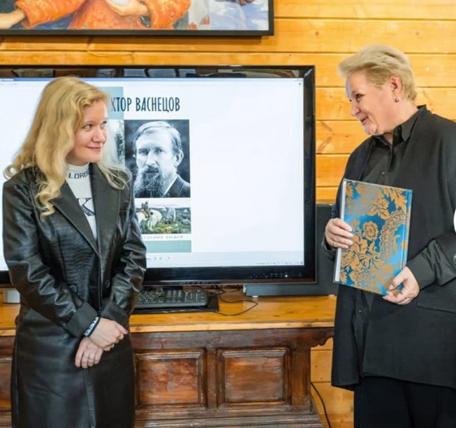 Доктор искусствоведения, профессор кафедры истории русского и византийского искусства Российской академии живописи, ваяния и зодчества Ильи Глазунова Екатерина Скоробогачева представила на Московской международной книжной ярмарке свою новую книгу «Виктор Васнецов. Живопись сказки как символ России» 4 сентября 2025 года.